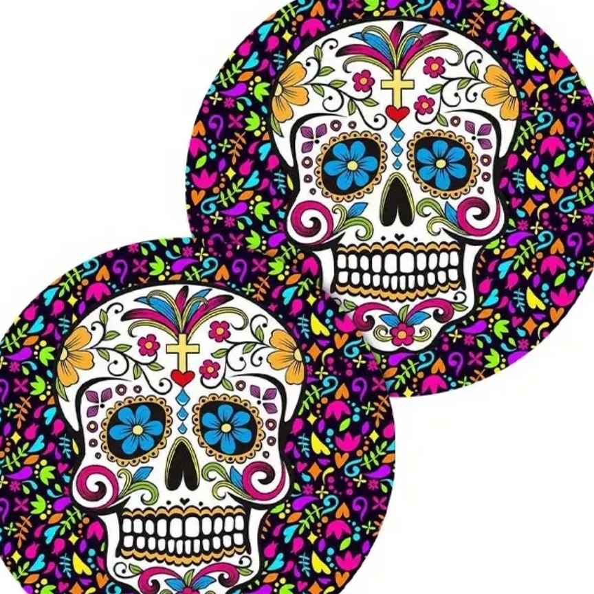 2pcs/set Colorful Skull Head Pattern Car Coasters, FauxLeather Dining Table Coasters, Non Slip Waterproof Heat-Insulating,