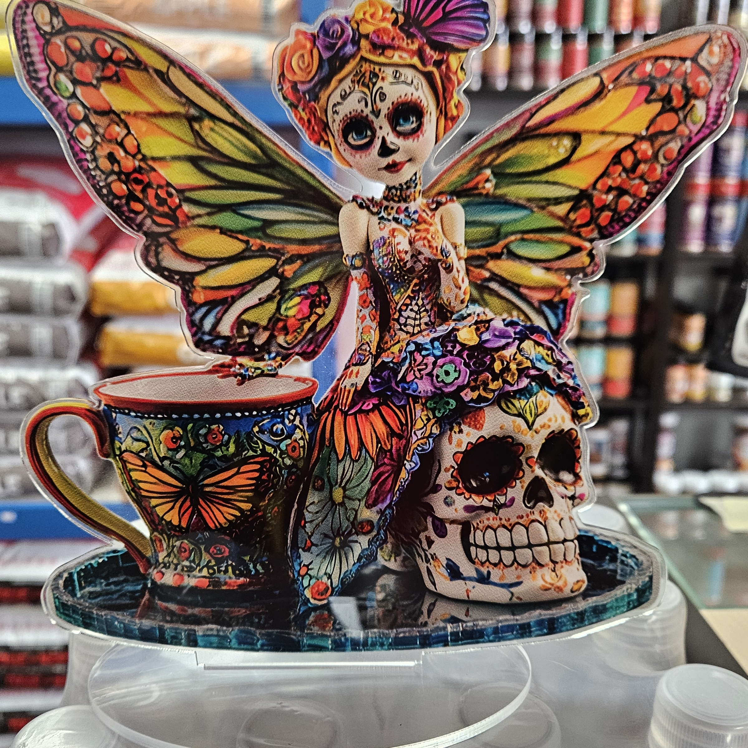 Step into a world of whimsy with our Day of the Dead Elf! Embrace its unique design that brings a festive theme to life. Crafted from high-quality materials in a 2D Flat Boho Style, this Acrylic Butterfly Skull Elf Decor is a must-have for those who love to add a touch of creativity to their space. Elevate your decor game with this charming piece today!