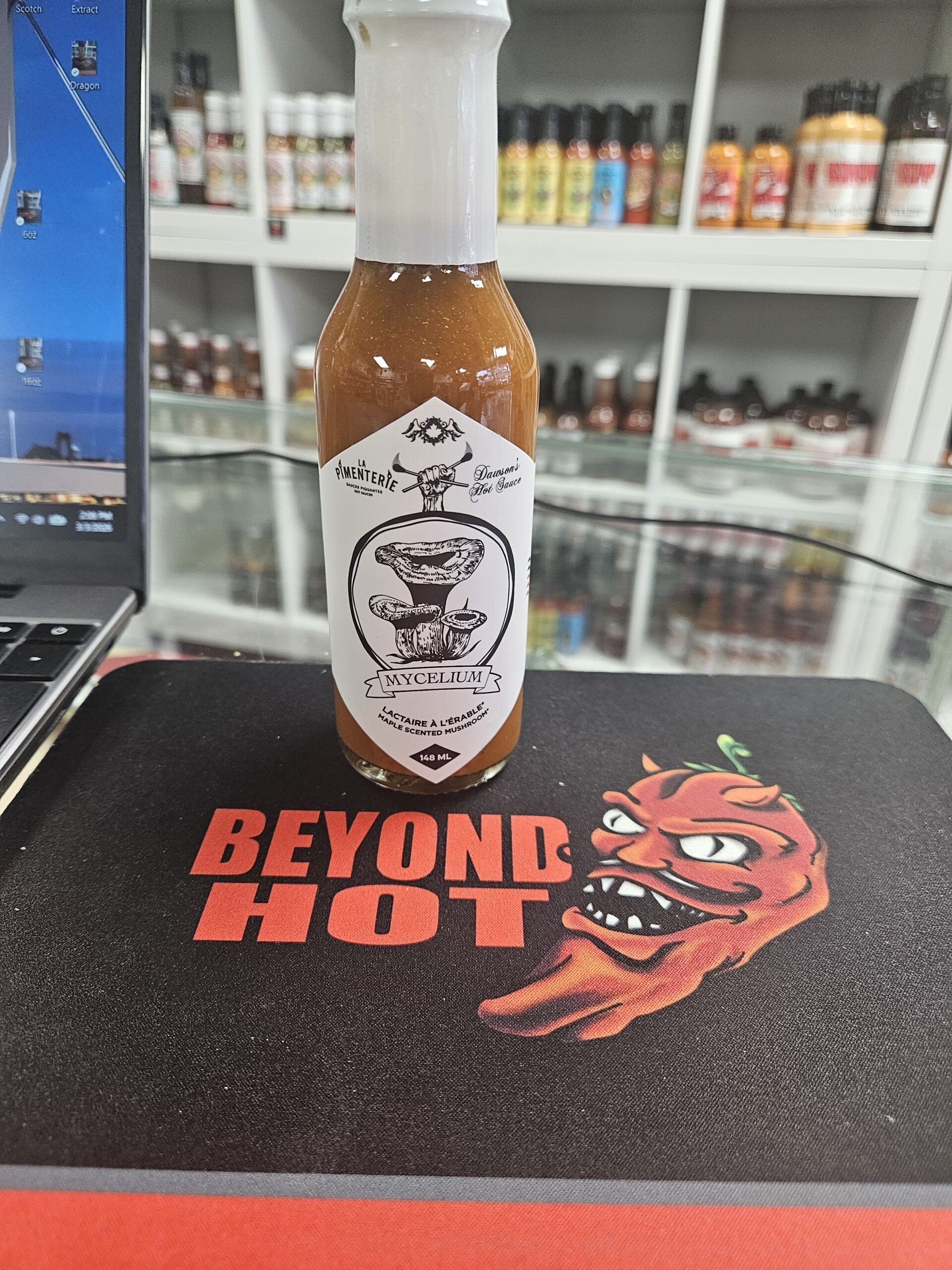 A collaboration with a great hot sauce company from Ontario, Dawson’s Hot Sauce. New limited edition, both salty and with a touch of sweetness, it is a UMAMI sauce with forest flavours and an exceptional mushroom, the maple scented mushroom! It is a mushroom that has the particularity of tasting and smelling the… Maple syrup without containing a drop of it. Ingredients: Water • Butternut squash • Cedar infused white wine vinegar • Red bell peppers • Onions • Habanero peppers • Miso (water, soybean, rice, salt) • Dehydrated hot peppers (Ancho, Arbol, Guajillo) • Garlic • Brown sugar • Salt • Canola oil • Dehydrated maple syrup milky cap mushrooms • Spices. Contains: Soy • Sulfites.